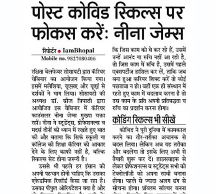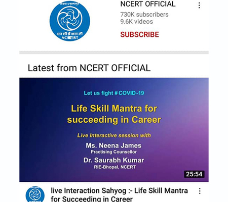 News print about yesterday's session done on "Life Skills Mantra for Succeeding in Career " for Sahyog NCERT Live TV Talk Show and also YouTube link for the same on NCERT channel.